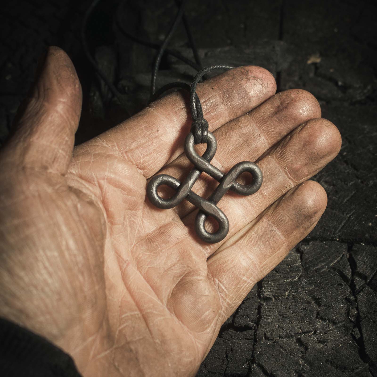 Precision i det flätade järnet Varje hängsmycke är handsmitt av järn för att ge Hannunvaakuna en solid, taktil form.