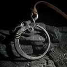 Tillverkad med syfte: Handsmidd av järn med silver detaljer, detta hänge förkroppsligar den råa styrkan och elementära karaktären hos Midgårdsormen. Smeden formar järnet till en kraftfull ring där ormens huvud och svans möts. Processen lämnar en påtaglig textur och karaktär på metallen, vilket ger ormen en känsla av gammal, organisk energi. Varje del är unik och bär smedjans omisskännliga märken.