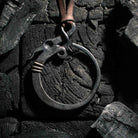 I den nordiska mytologins episka sagor är Jörmungandr, Midgårdsormen, en varelse med oerhörd kraft, lindad runt hela Midgårds, människornas värld, och håller den inom sitt grepp. Den representerar det stora och otämjda, gränsen för den kända världen och de cykliska krafter som omfattar själva tillvaron. Detta järnhänge fångar formen av världsormen, en symbol för omslutande kraft, verklighetens kanter och den eviga cykeln.