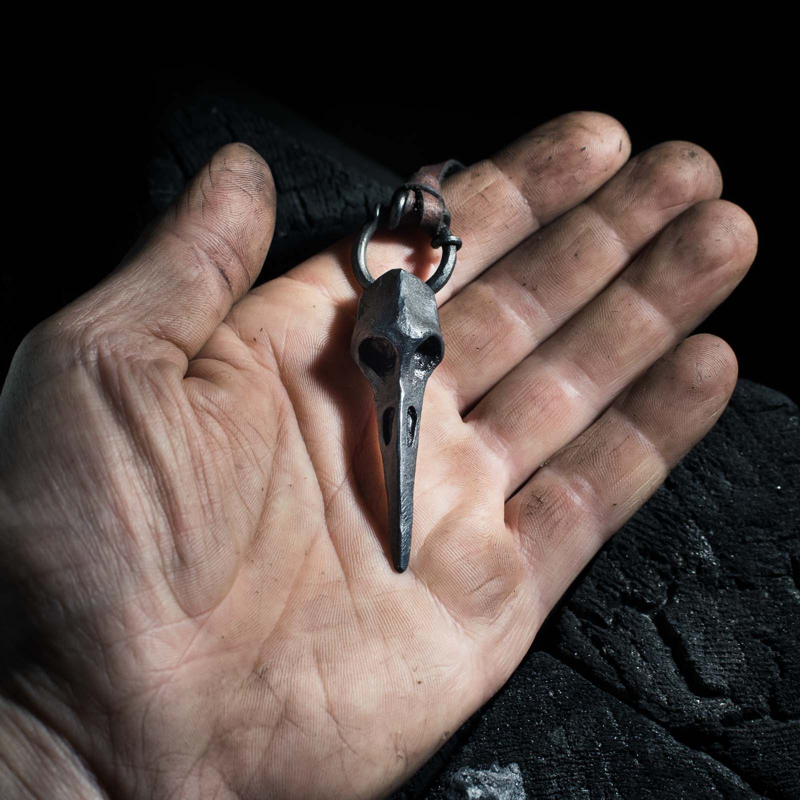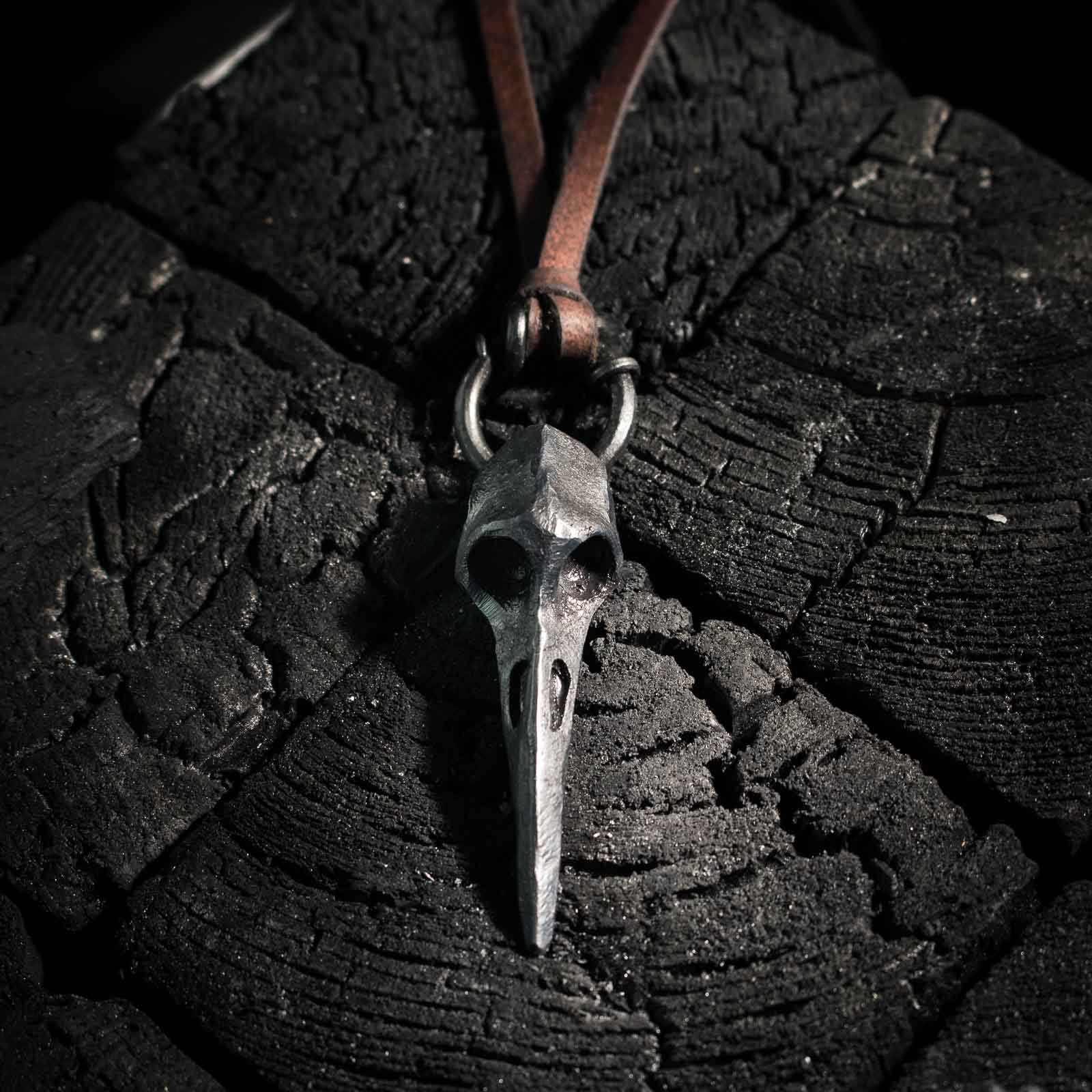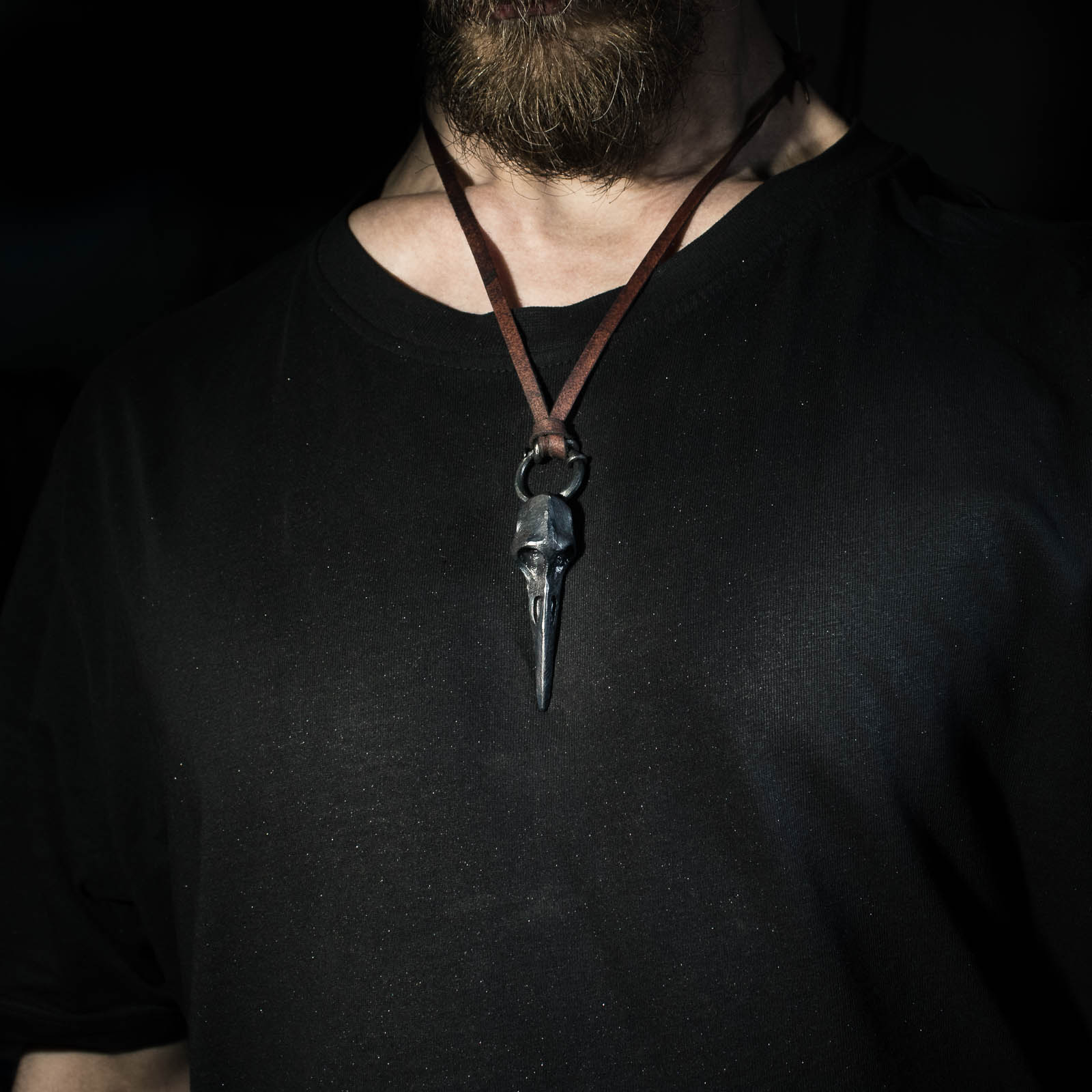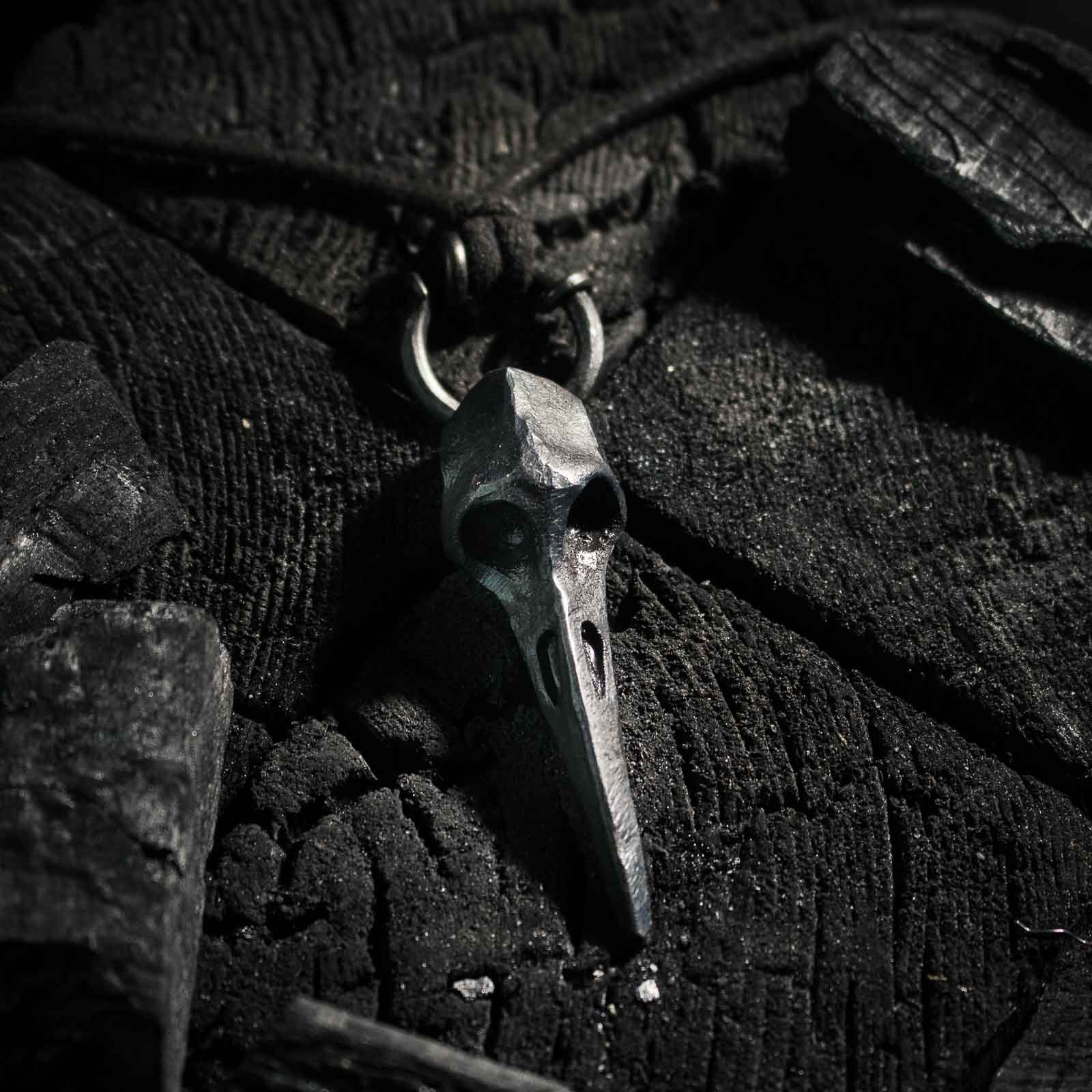 Korpen har länge setts som en varelse av djup visdom och mystik. I den nordiska tron var Hugin (Tanken) och Munin (Minnet) Odens budbärare. De flög ut i världen för att hämta insikt. Detta hängsmycke är en hyllning till den resan, men också en påminnelse om en viktig sanning: du är inte dina tankar. Genom att ge tanken en yttre form i järn blir det lättare att betrakta den med distans och klarhet.