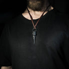 Tillverkad med syfte: Detta hängsmycke är handsmitt av järn, ett material djupt förknippat med jorden och bestående styrka. Smeden formar noggrant metallen för att fånga den distinkta formen av en korpsskalle, från näbbens kurva till ögonhålornas håligheter. Varje smycke är en unik skulptur, med den ärliga textur och karaktär som hammaren lämnat, ett bevis på den skicklighet som krävs för att återge en sådan form i oförlåtande järn.