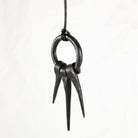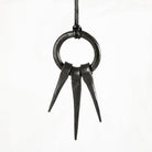 Tillverkad med syfte: Triklor-halsbandet är handsmidet av massivt järn. Den robusta ringen är formad av uppvärmd metall, dess yta bär hammarens autentiska struktur. Tre individuella spikar är sedan skickligt smidda, var och en avsmalnande till en punkt, vilket reflekterar fokuserad avsikt. Dessa element sammanförs sedan, sätts ihop till ett sammanhängande stycke som framhäver det smidda järnets råa skönhet och styrka. Varje aspekt formas för hand, vilket säkerställer att varje halsband är unikt.