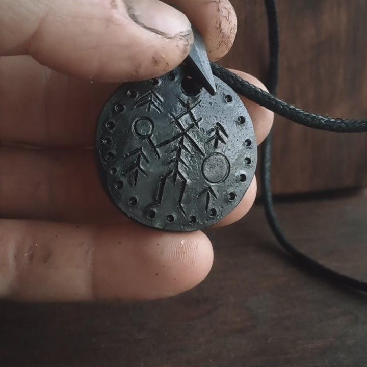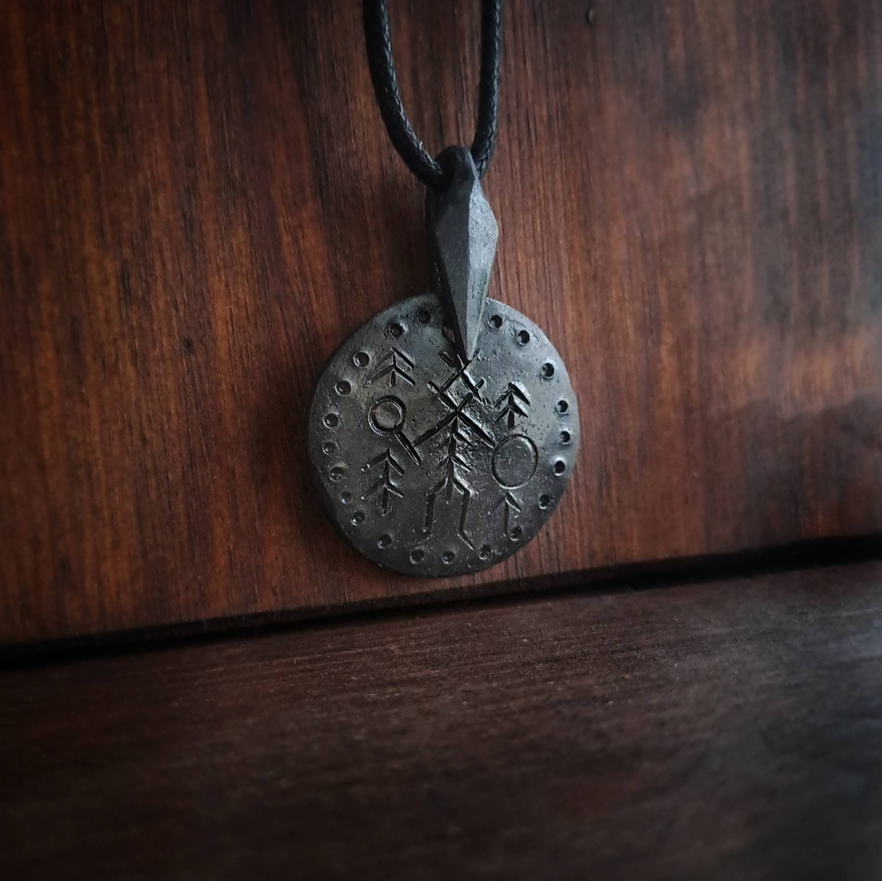 Jägarhuvud format av Inguz, kreativa krafter, skapelseförmåga, förmåga att förverkliga sig själv och ansluta till magin i naturen, från heliga källor och träd.