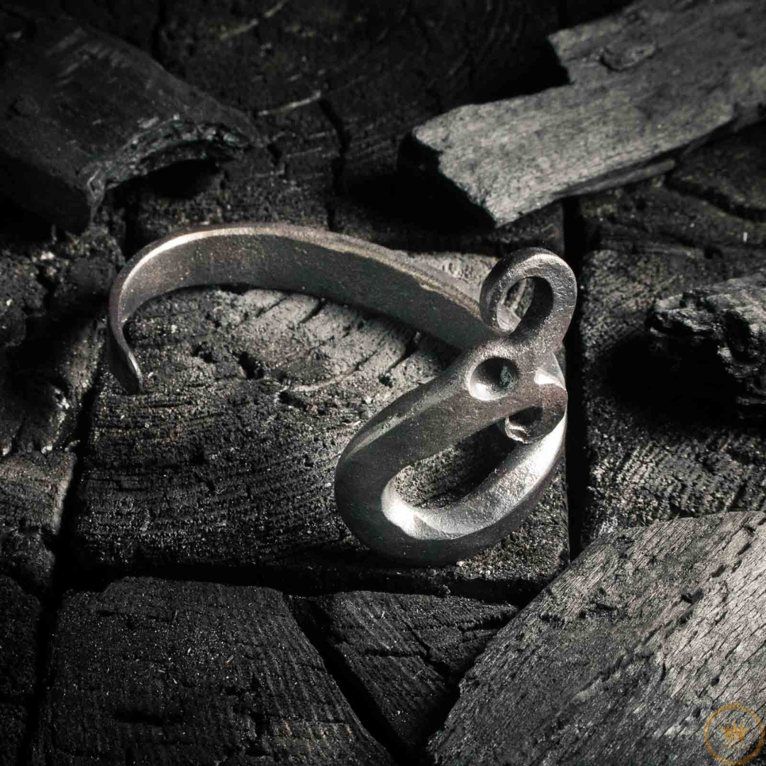 Genom tiderna har ormen varit en kraftfull symbol – den representerar visdom, beskydd, återfödelse och existensens cykliska natur. Detta armband i järn, förkroppsligar denna ursprungliga kraft och motståndskraft. Det talar om en koppling till forntida krafter och den bestående styrkan som finns i naturen och i en själv. Tillverkat av just det material som byggde civilisationer, är detta smycke en påtaglig länk till det förflutna och en personlig symbol för nutiden.