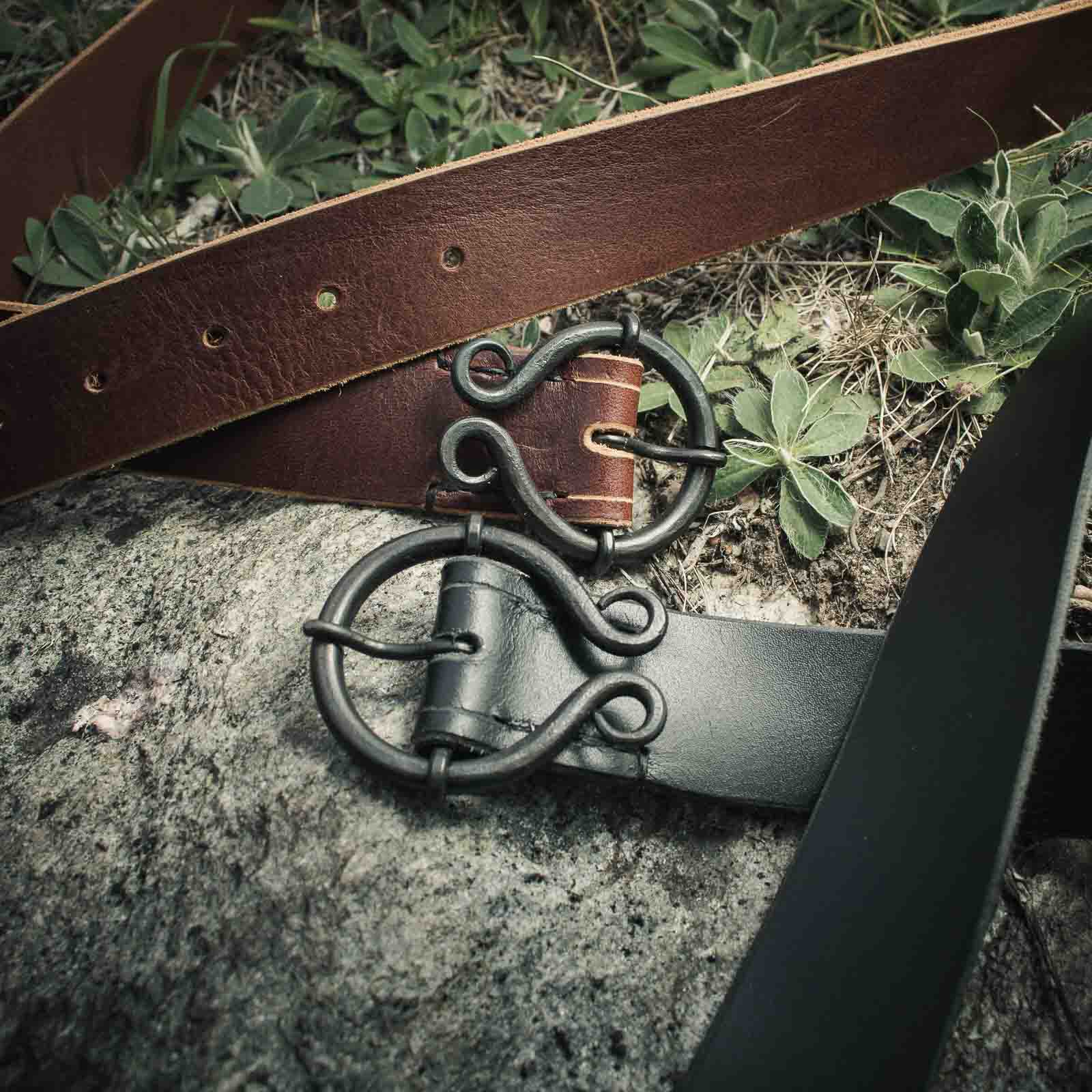 Tillverkat med syfte: Spännet är handsmitt av järn och bältet gjort utav av robust kvalitetsläder, valt för sin motståndskraft och karaktär som bara förbättras med åldern. Spännet, hjärtat i bältet, är format med traditionella smidestekniker. Varje kurva och fasett av det smidda järnet talar om hammarens dans och smedens skicklighet, vilket resulterar i ett spänne som är lika unikt som händerna som tillverkade det. Detta är metallarbete avsett att hålla, byggt med integritet.
