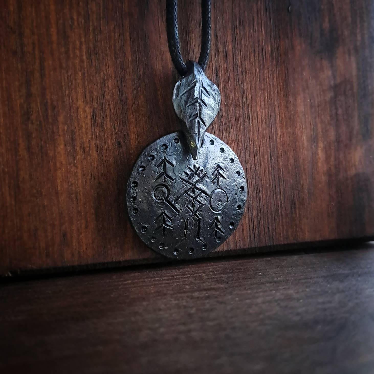Jägarens huvud format av Inguz, kreativa krafter, förmåga att förverkliga sig själv och knyta an till magin i naturen, av heliga källor och träd. Sammansmältningen av jord och himmel.