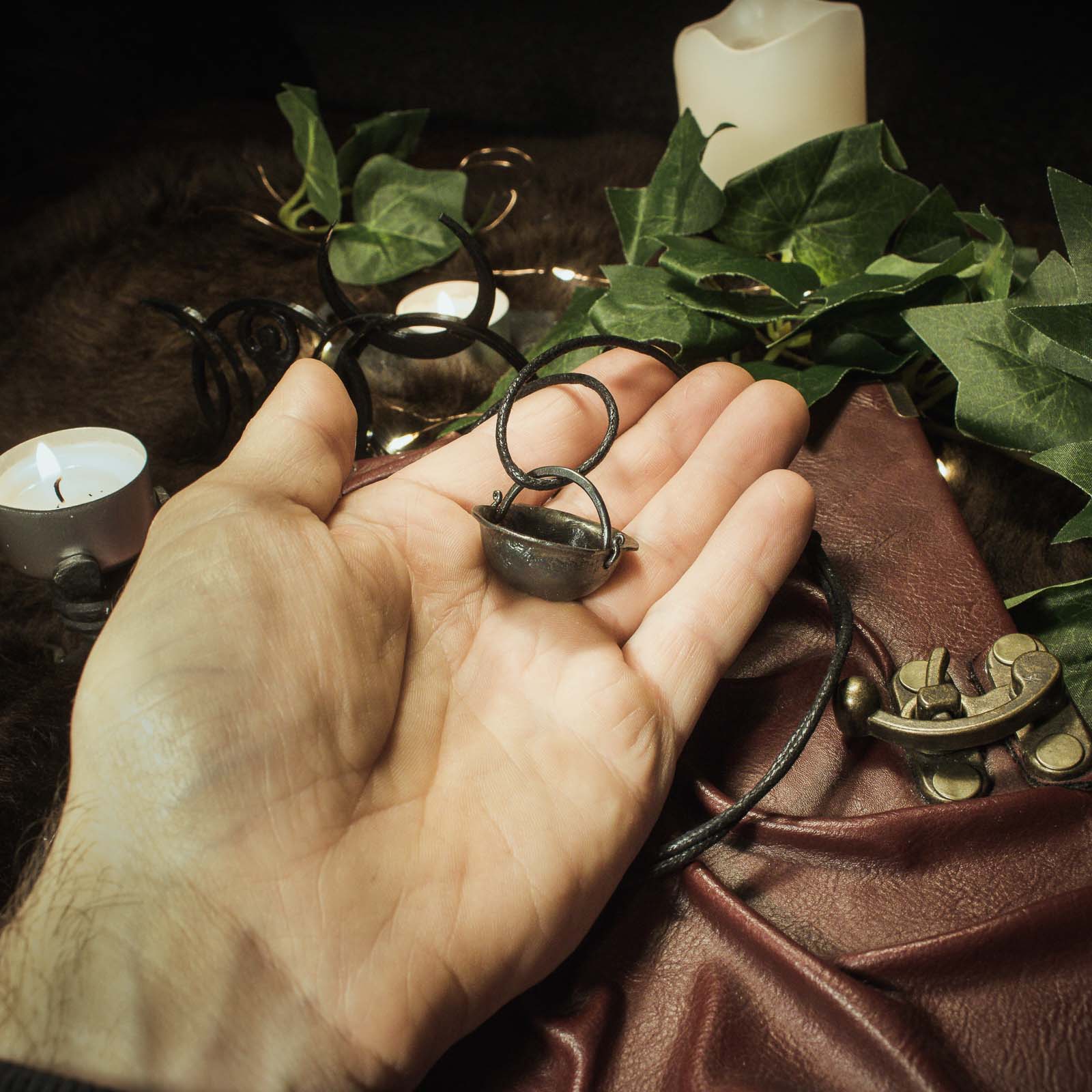 En symbol för din berättelse: Kitteln symboliserar de transformerande processerna i ditt eget liv – de utmaningar du övervinner, den visdom du får och den unika blandningen av erfarenheter som gör dig till den du är. Bär detta hänge som en påminnelse om din kreativa kraft, din förmåga att förvandla motgångar till styrka och den potential som gror inom dig. Det är en symbol för dem som aktivt skapar sitt eget epos och lämnar sitt unika avtryck.