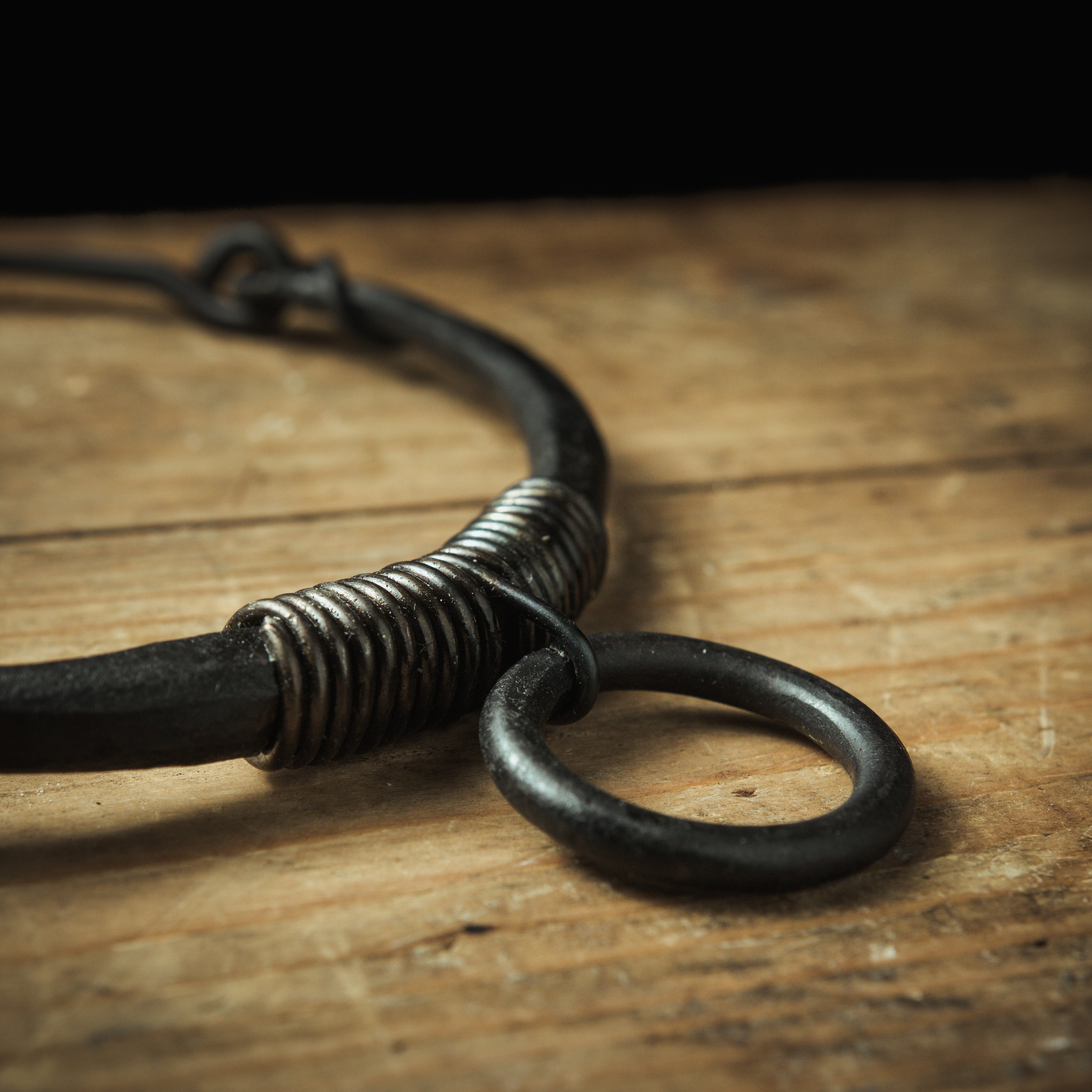 Ringen, en tidlös symbol som finns i kulturer och århundraden, talar om evighet, enhet och ett okrossbart engagemang. När den bärs nära hjärtat, betyder det en djup, personlig koppling – till en person, ett löfte eller ett kärnvärde. Detta halsband har en handsmidd järnring som sitt centrala element, vilket grundar denna uråldriga symbolik i järns varaktiga styrka och ärliga karaktär.